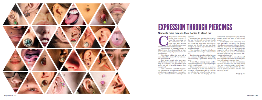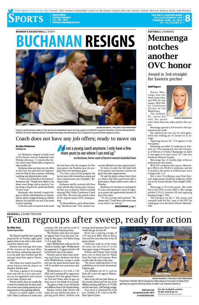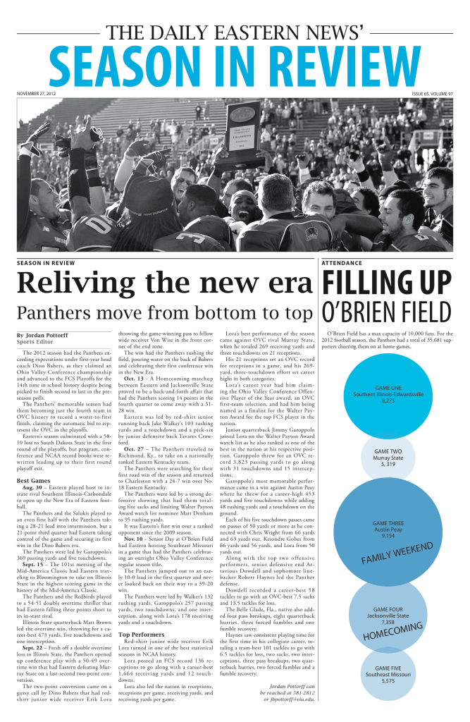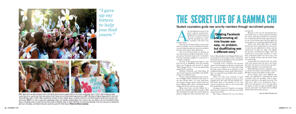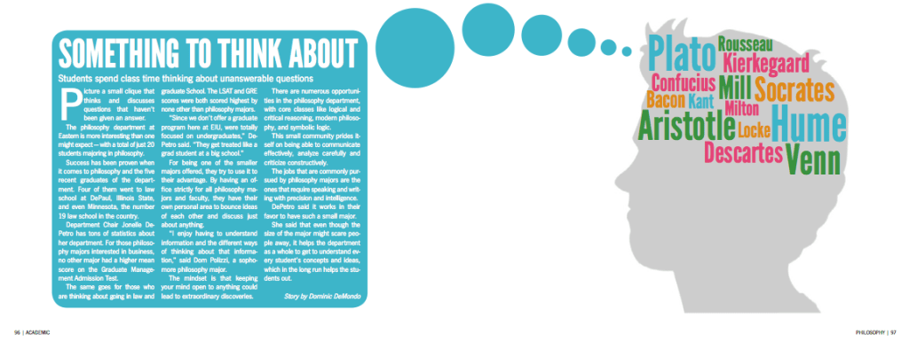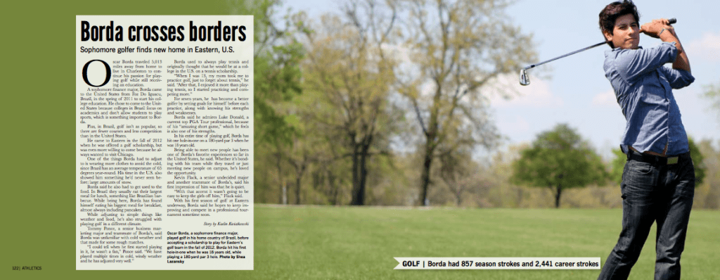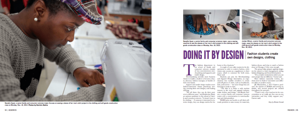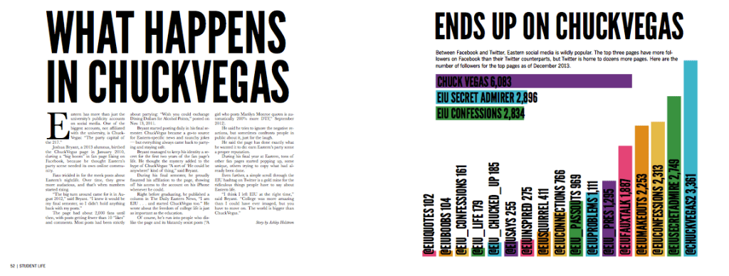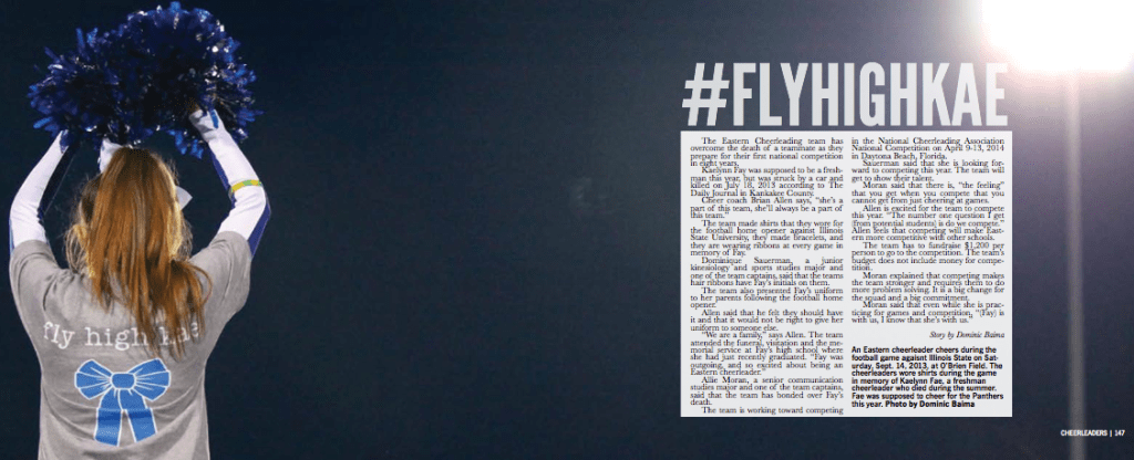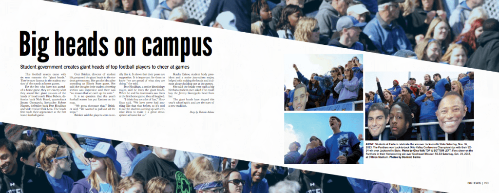 Spreads designed for the 2013-14 yearbook at Eastern Illinois University.